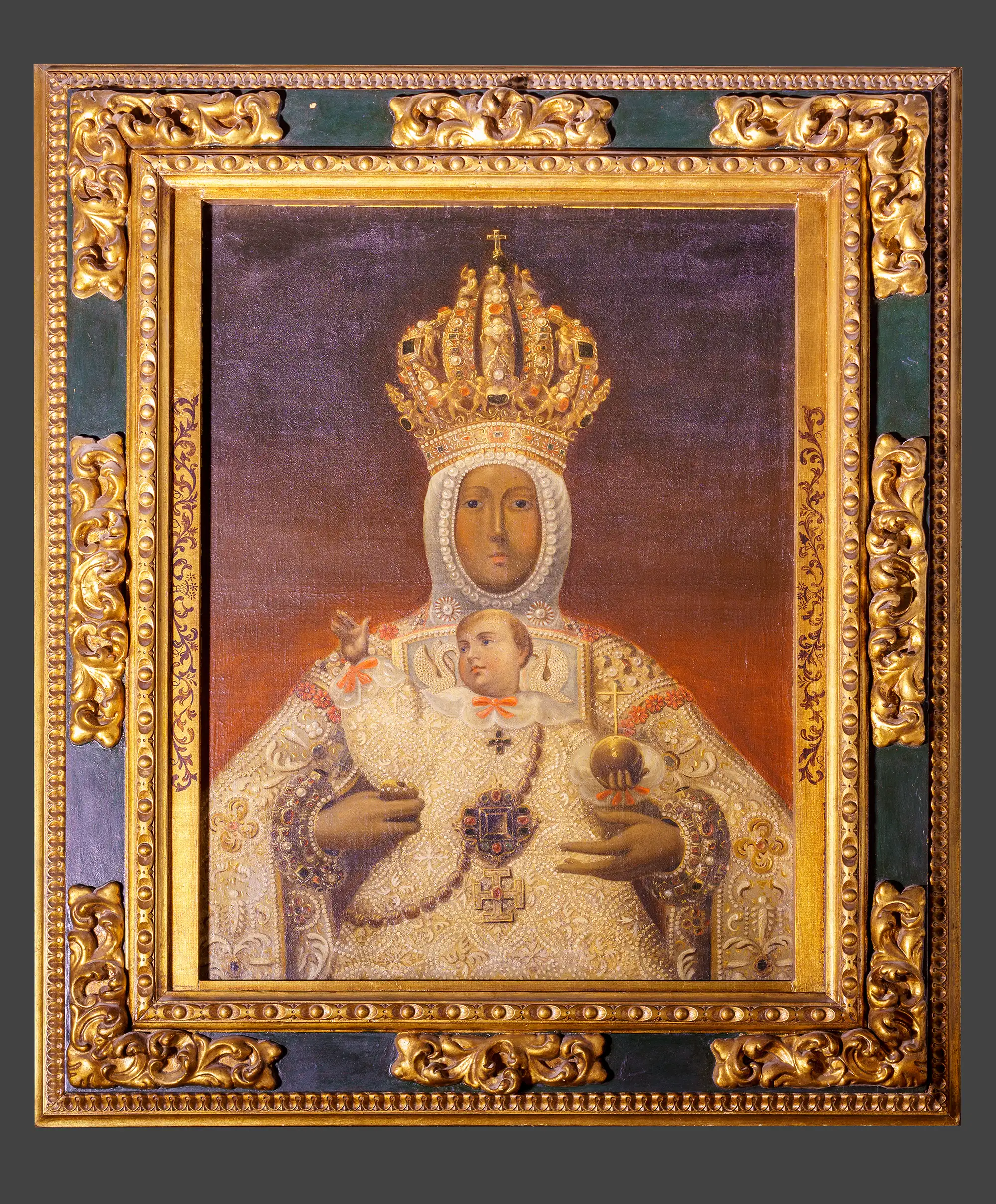 Este lienzo de la Virgen del Sagrario, patrona de Toledo, se conserva en la Parroquia de la Santísima Trinidad de Alcaraz.